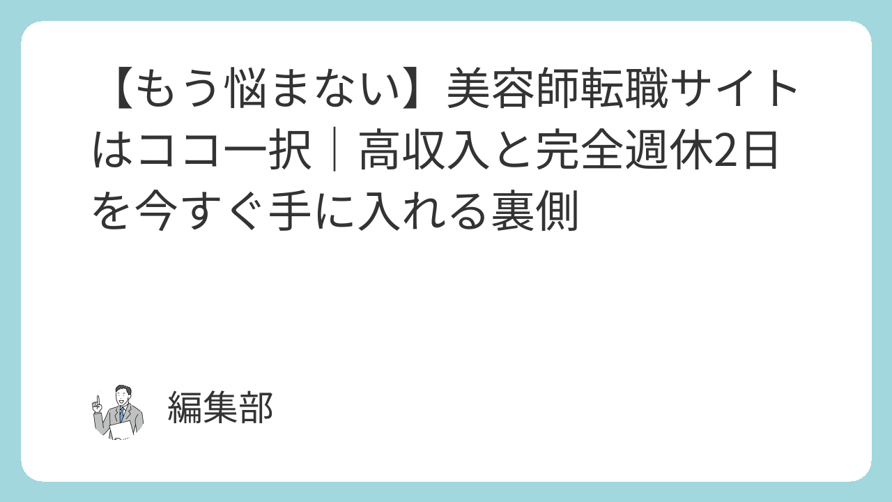 あなたの理想の美容師人生は、ただの「求人情報」を探すだけでは絶対に手に入らないのは知っていますよね?