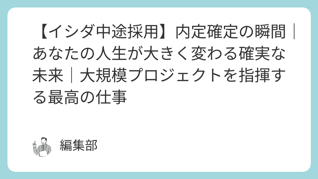 このたった1分の行動が、あなたのイシダへの転職、そして大規模プロジェクトを指揮する人生を確実に加速させるのです。