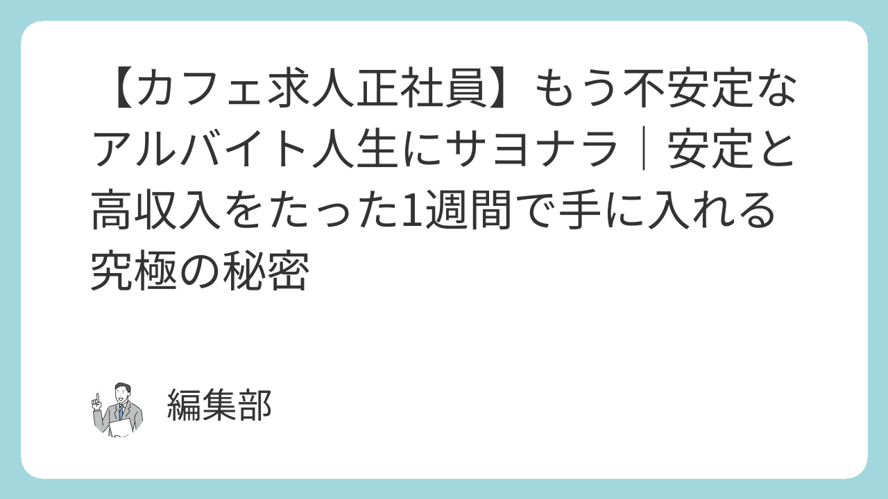 その不安定なカフェアルバイト生活、まだ続けますか?今すぐ「安定」と「高収入」を手に入れる究極の選択
