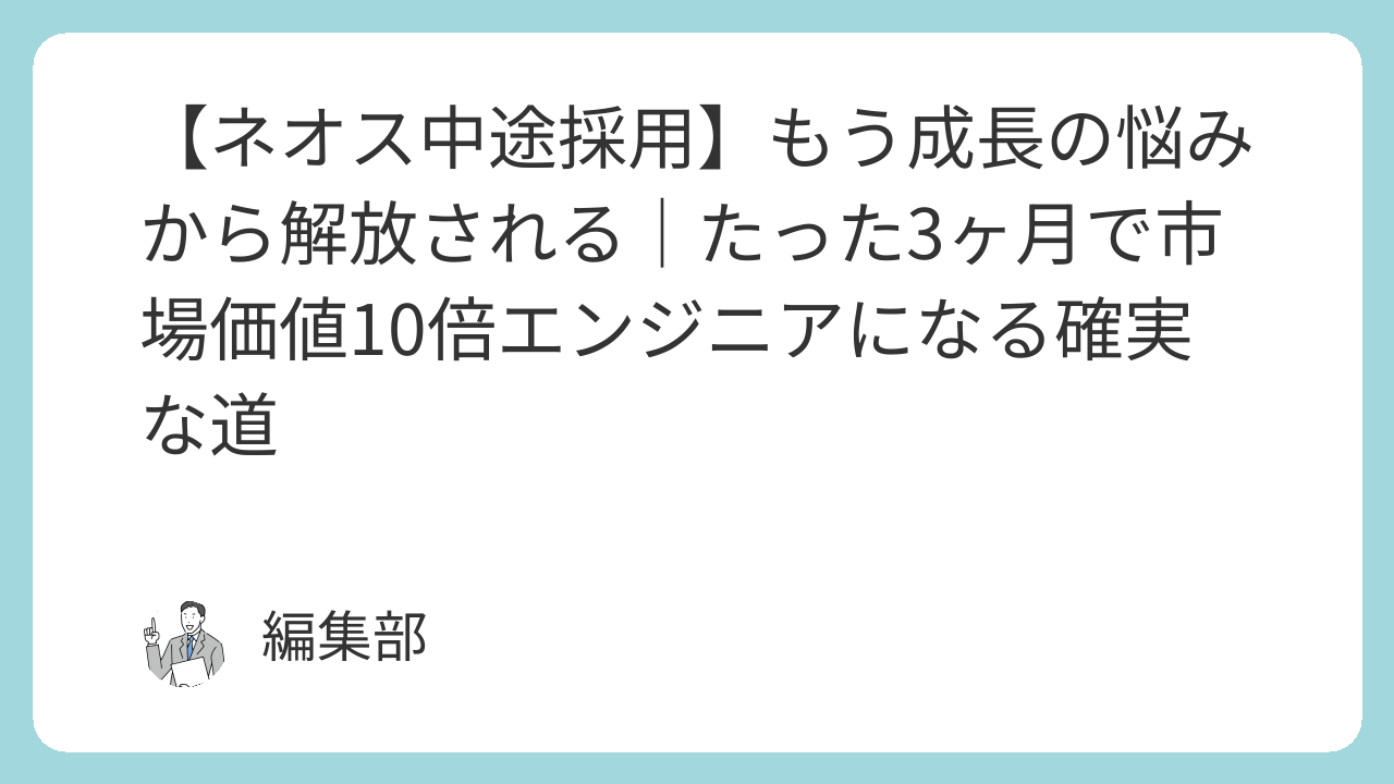 もしあなたが停滞した現状を打破し、市場価値の高いエンジニアになりたいなら、「ネオス」への転職はまさに最適な選択です。