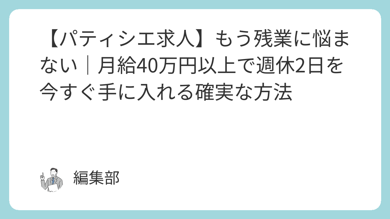 月給40万円を手に入れ、週休2日でプライベートも充実させる、そんなパティシエとしての人生を。