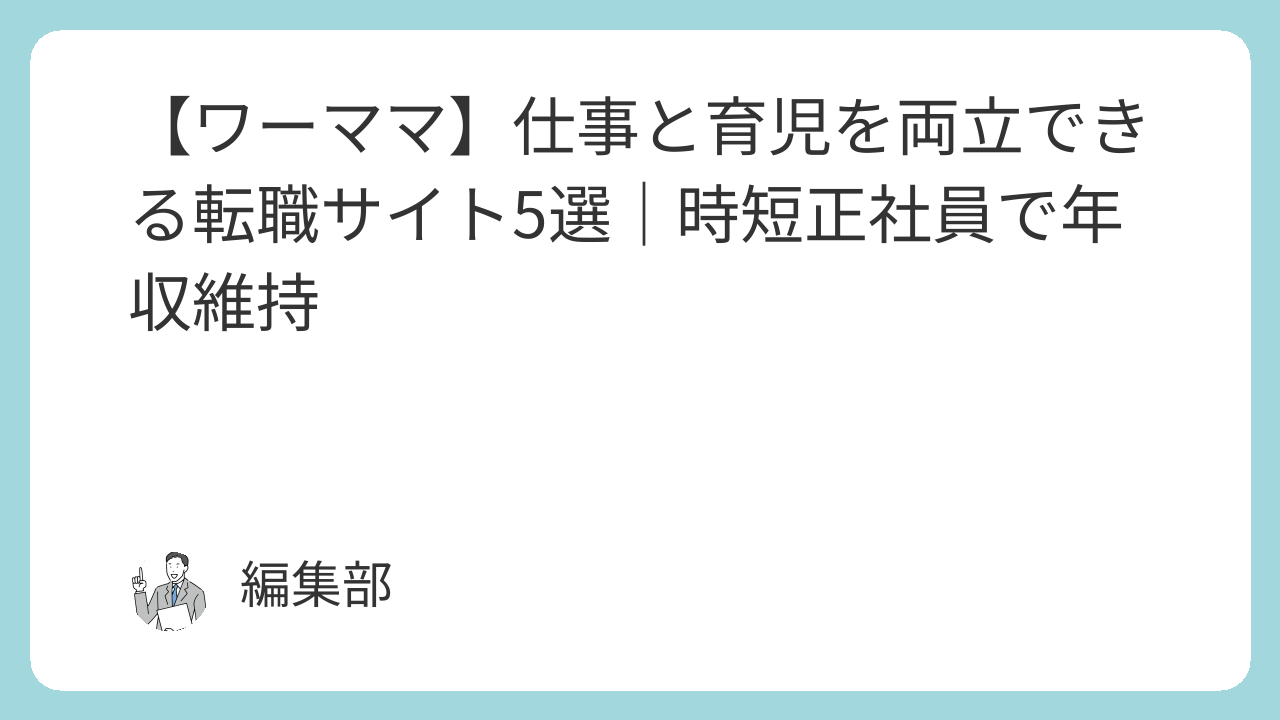 この記事では、ワーママの転職に特化したサービスの選び方から、時短正社員や柔軟な働き方を実現できる主要な転職サイト5選を詳しくご紹介します。