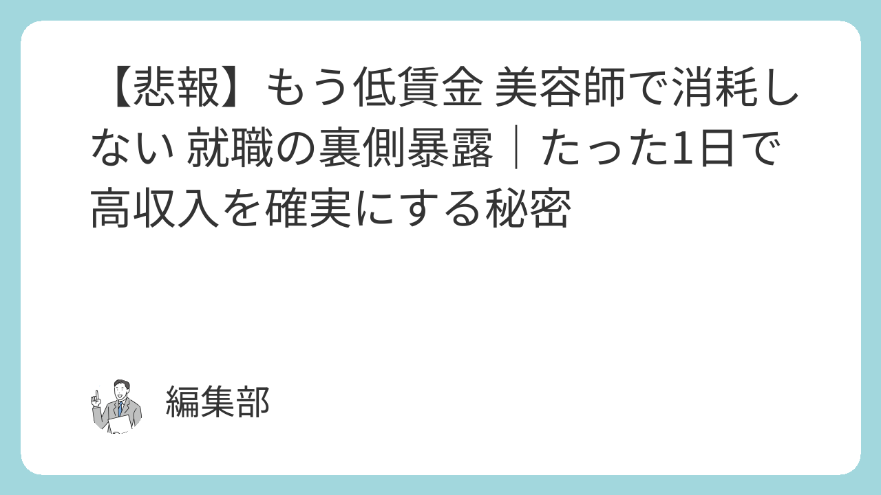 - 誰も教えてくれない「高収入 美容師」の裏側を今すぐ知るチャンスです。