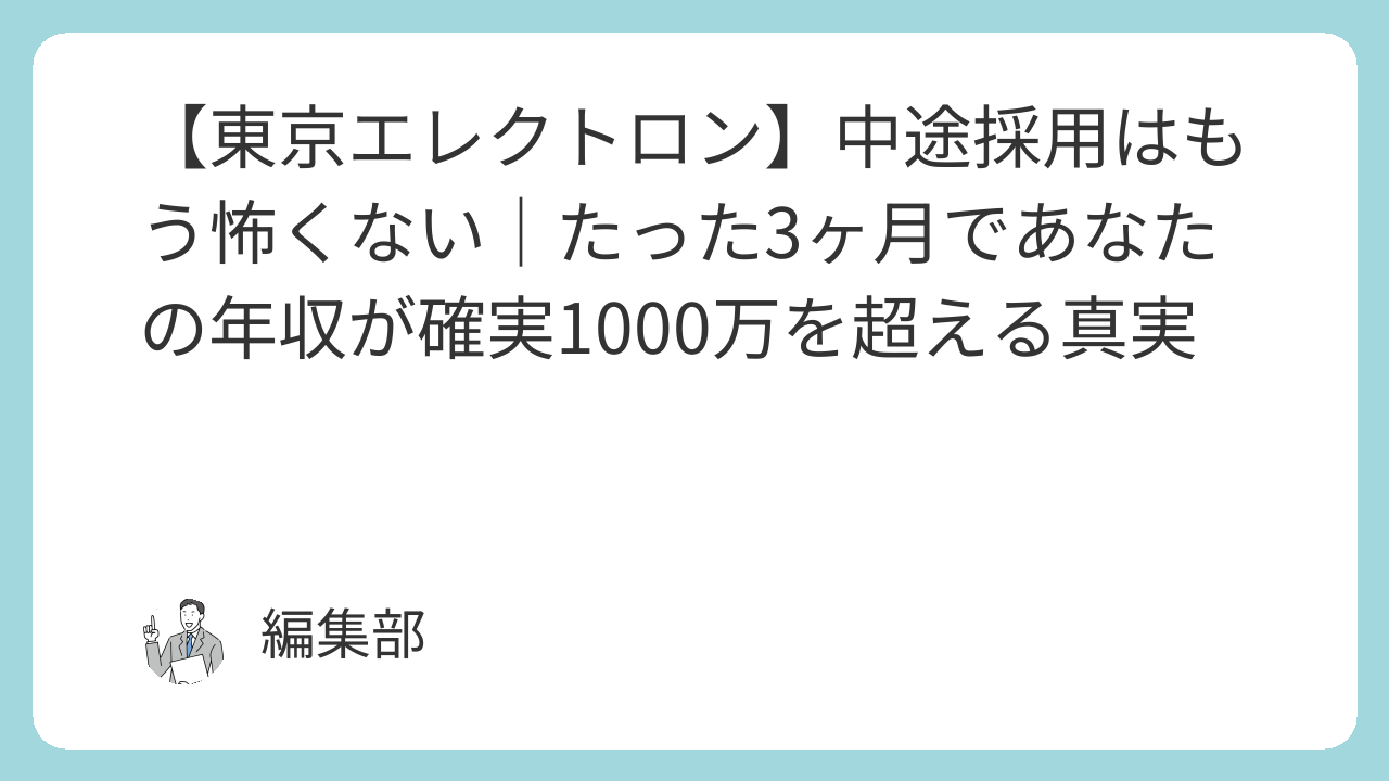 私自身も、過去には現職での限界を感じ、{{東京エレクトロン}}のような一流企業への転職は夢のまた夢だと考えていました。