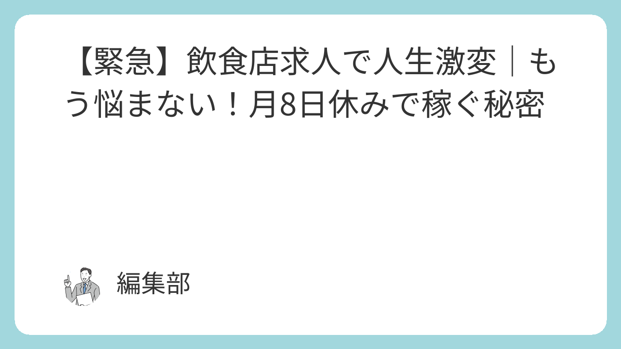 あなたの未来は確実に激変し、理想の「月8日休み飲食」と「飲食求人高収入」が実現します。