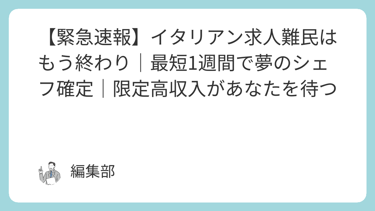 あなたは、イタリアンシェフとしての夢を抱きながらも、日々の忙しさから転職活動を諦めてしまう現状に悩んでいませんか?時間がなくて、求人情報をじっくり探すこともできない。