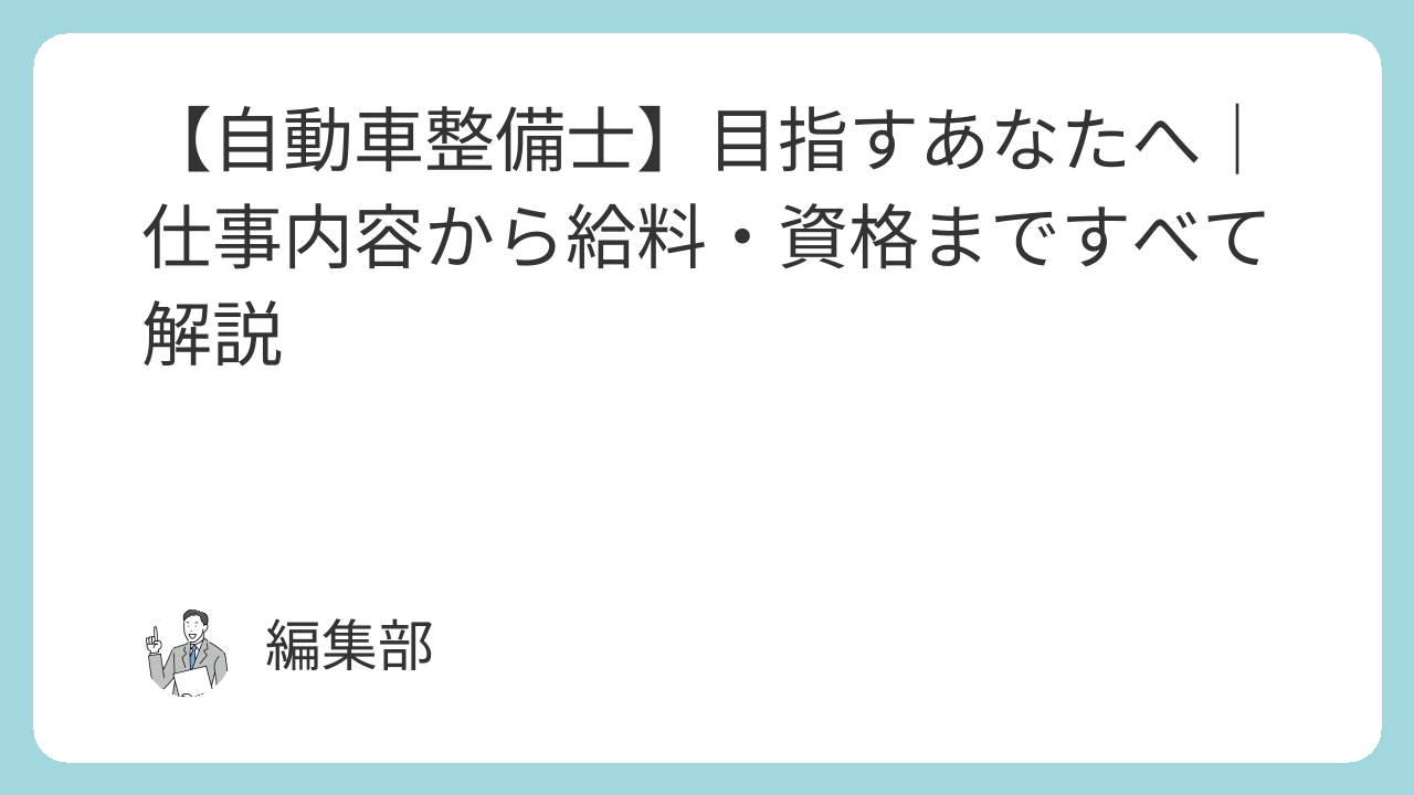 この記事では、自動車整備士の具体的な仕事内容、必要な国家資格の取得方法、給料や将来性、さらには未経験からの道筋までを網羅的に解説しています。