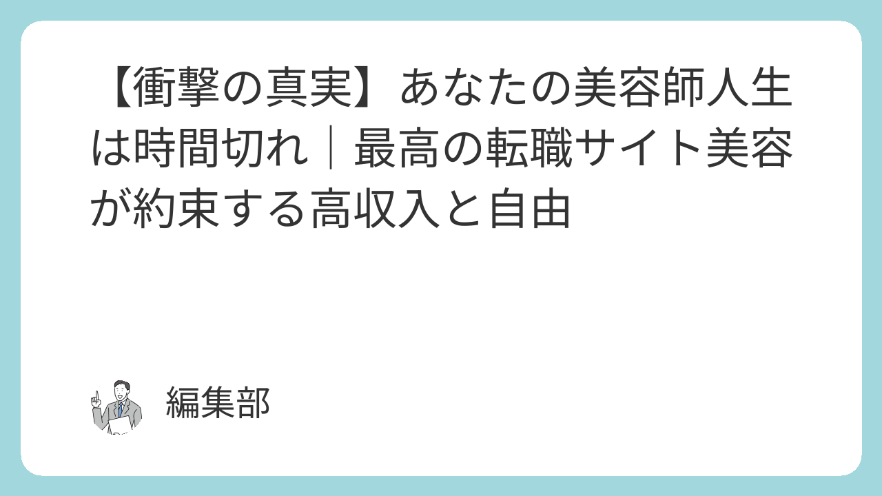 美容師として、毎日同じような悩みを抱えながら、漠然と将来への不安を感じていませんか?特に、理想の働き方を見つけるための「転職サイト 美容」選びに迷っているなら、この記事はあなたのためのものです。