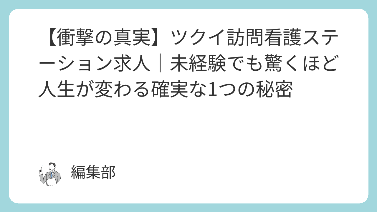 ツクイ訪問看護ステーションの裏側|未経験でも成功する確実な働き方の秘密