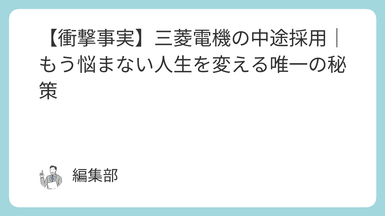 - 三菱電機の中途採用は難易度が高いですが、正確な情報と戦略的な準備があれば突破が可能です