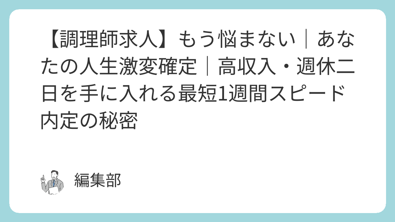 驚くほど高収入・週休二日を叶える厳選調理師求人の真実