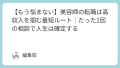 - 年収が30万円以上アップし、経済的な不安から完全に解放されて、心の底から安心できる
