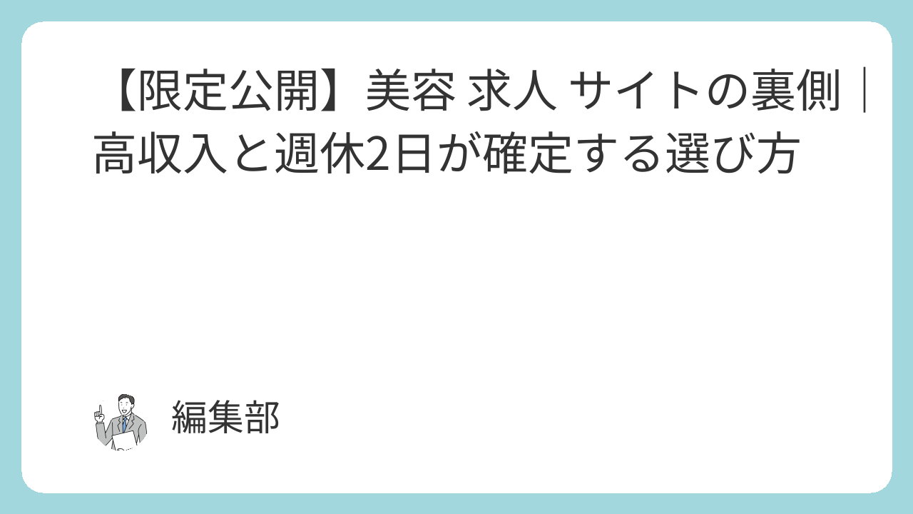 あなたが知らない真実|なぜ美容 求人 サイトでは「高収入」「週休2日」が手に入らないのか