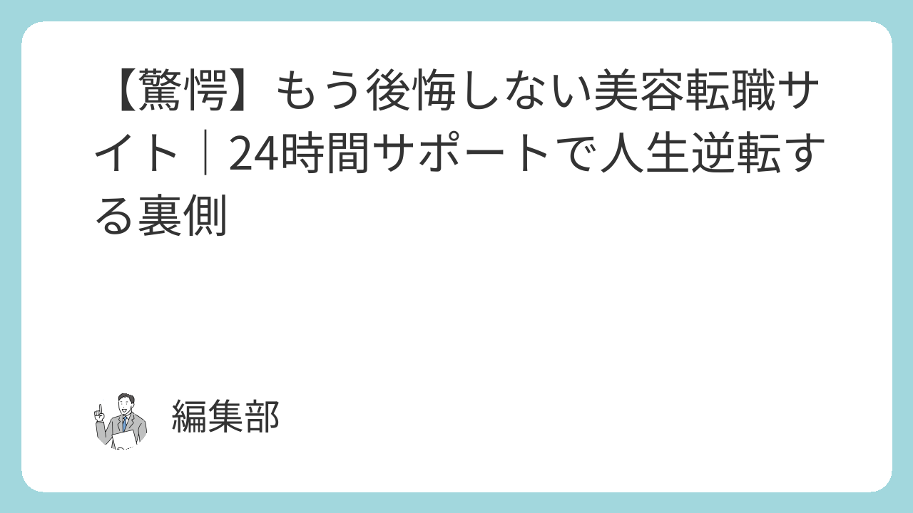 実はその悩み、嘘みたいに解決する「24時間サポート付きの美容 転職サイト」があるんです。