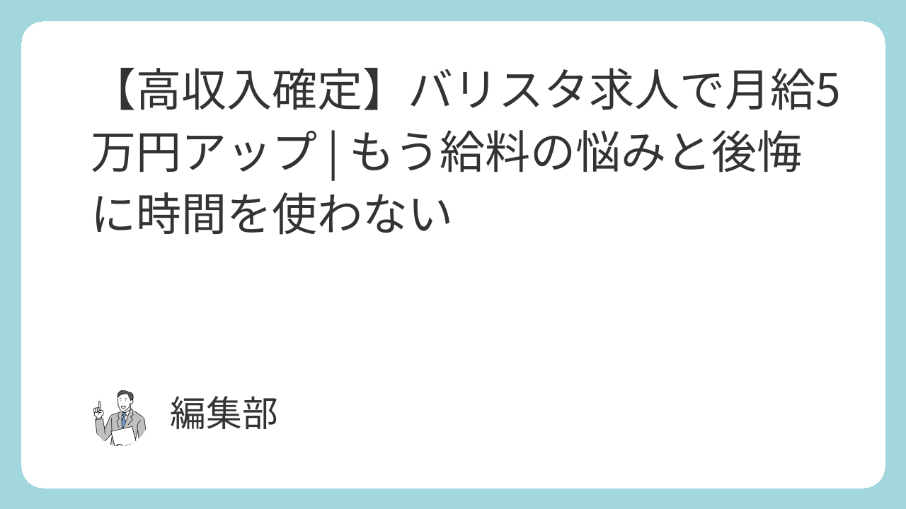 もう過去の悩みには時間を使わない!「高収入」「好待遇」バリスタ求人を効率的に手にする最短ルート