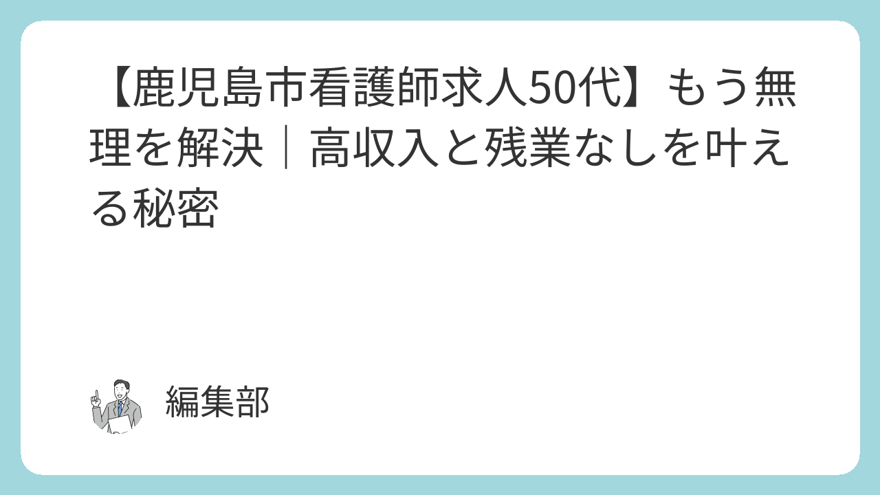 特に鹿児島市病院看護師50代の職場で働く方々から、「もう体力的に限界」という声を数多く聞いてきました。