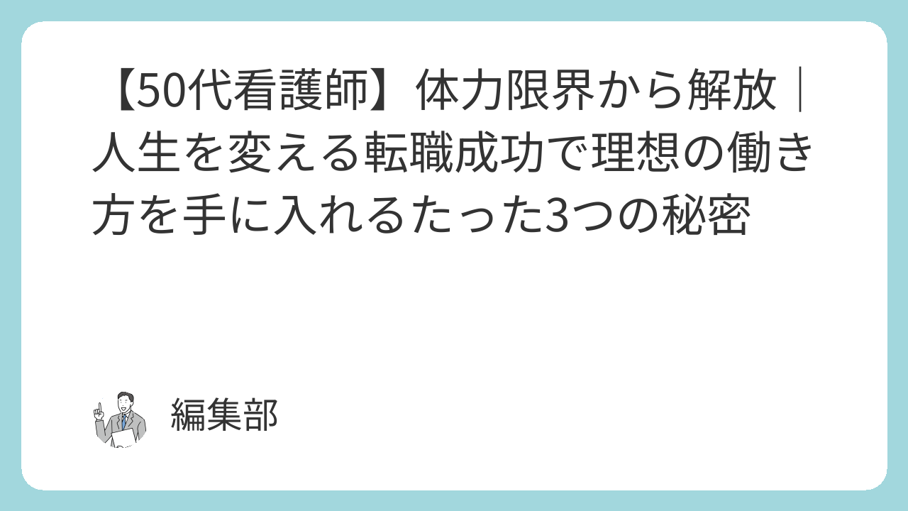 50代の看護師として、体力的な限界や経験が正当に評価されない悩みを抱え、「看護師 50代 転職」は難しいと諦めていませんか? この記事では、そんなあなたの人生を変える「ターニングポイント」が「今」であることを伝えてきました。