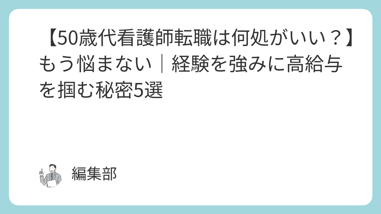 あなたのスキルや経験を活かし、精神的に穏やかに働ける環境が「50代看護師成功」の鍵となります。