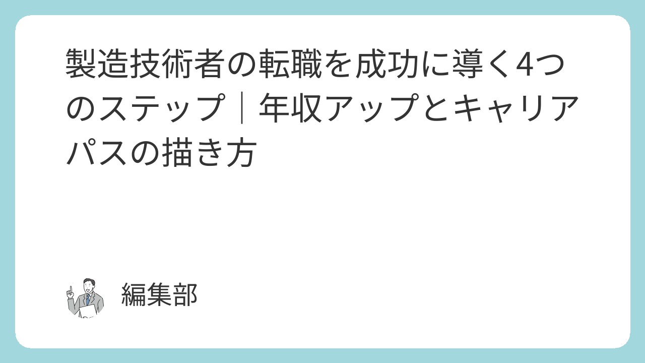 この記事では、製造技術者の方が年収とキャリアを同時に向上させるための、具体的な転職ステップを解説しました。