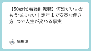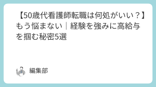 50代からの転職はもう遅い、そんな風に感じていませんか?長年の看護師経験があるのに、正当な評価を得られない夜勤や不規則なシフトで、体力的な50代看護師働き方の限界を感じている職場の看護師人間関係に疲弊し、心身ともに消耗している50代という年...