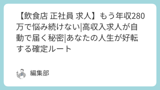 転職 【飲食店 正社員 求人】もう年収280万で悩み続けない|高収入求人が自動で届く秘密|あなたの人生が好転する確定ルート