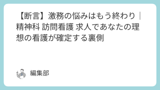 和歌山市で、夜勤や残業に追われ、家族との大切な時間が持てないと深く悩んでいませんか?病院勤務での夜勤や突発的な残業が多く、心身の疲れがピークに達しています子どもの学校行事や急な体調不良に対応できず、家族に申し訳なさを感じています訪問看護には...